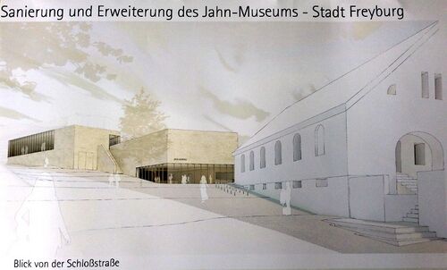 (DOSB-PRESSE) Die Friedrich-Ludwig-Jahn-Gesellschaft in Freyburg (Unstrut) hat auf ihrer Mitgliederversammlung das Bauvorhaben zur Erweiterung des Jahn-Museums vorgestellt. Neben der Sanierung des bestehenden Gebäudes soll das jetzige Museum durch zwei Funktionsbauten ergänzt werden, die die Museumsbestände und die Bibliothek aufnehmen und die auch Seminarräume bereitstellen werden.